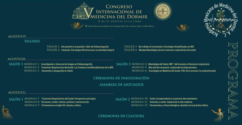 En un tiempo que nos exige rigor y propósito, necesitamos espacios que eleven la conversación. El V Congreso Internacional de la Academia Mexicana de Medicina del Dormir A.C. pretende ser ese punto de encuentro: ciencia que dialoga, clínica que mejora y comunidad que se fortalece. Bienvenidos a la Ciudad de México del 19 al 21 de agosto de 2026.